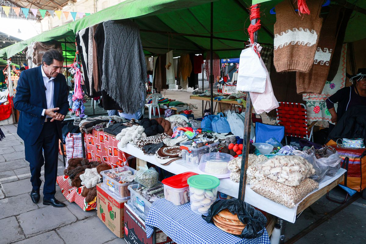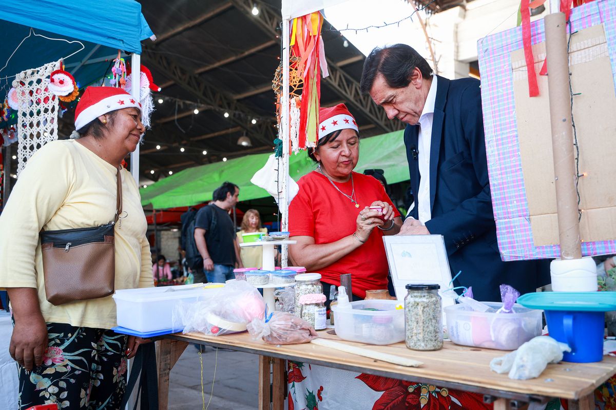 El Mandatario provincial, Carlos Sadir, visitó a los integrantes de la tradicional gran Feria Campesina Pucará, que reúne identidad cultural y producción de las cuatro regiones de Jujuy, en el Centro Cultural Manuel Belgrano, (Vieja Estación) de la capital jujeña.