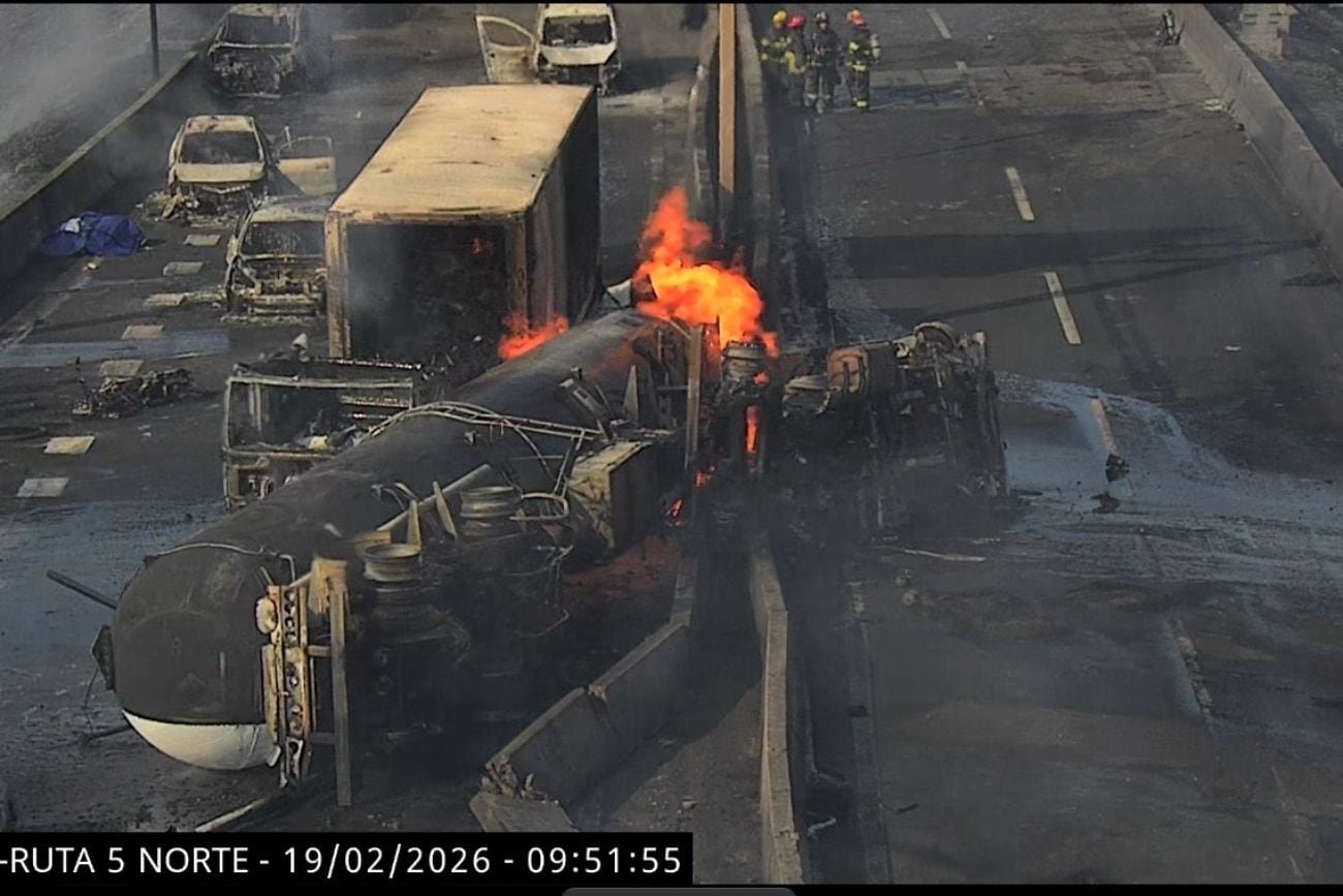 El vehículo perdió el control e impactó contra las barreras de contención de la ruta 5, una de las principales autopistas del país. Minutos después se produjo una explosión que generó un incendio de gran magnitud.