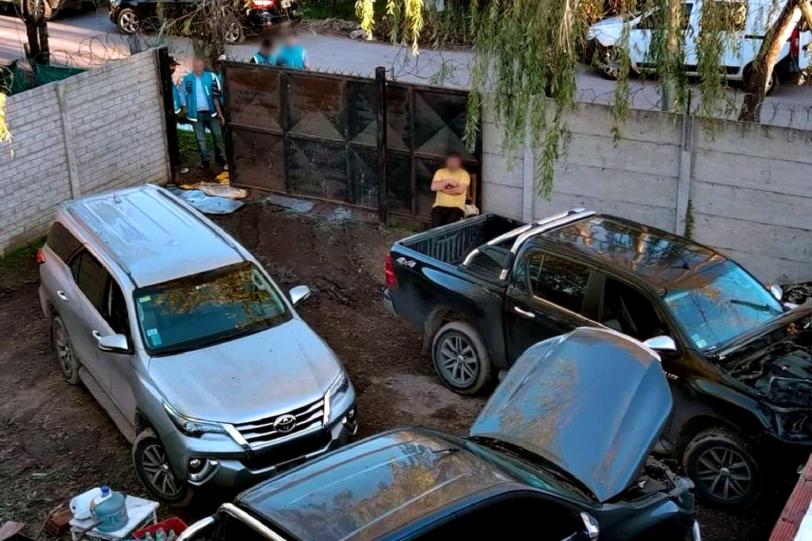 Una de las camionetas recuperadas en el inmueble allanado en General Rodríguez el sábado pasado había sido sustraída durante los primeros minutos del jueves de la semana pasada en el barrio porteño de Versalles. Se trataba de una camioneta Toyota Hilux negra.