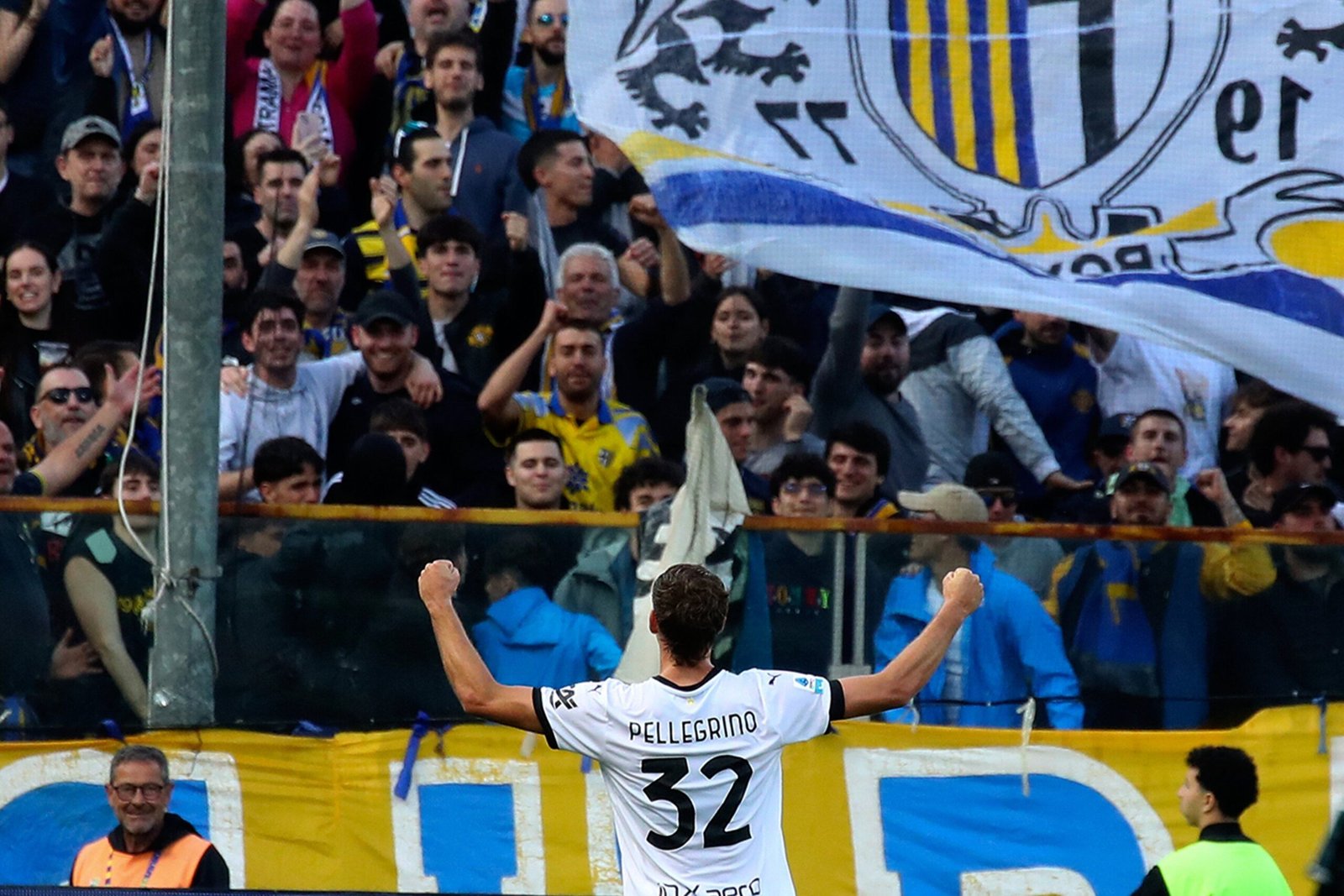 La historia de Pellegrino en Italia es reciente, pero fulgurante. Llegó en silencio a Parma en febrero, procedente de Vélez, con pasos a préstamo por Estudiantes y Platense, donde dejó una huella profunda. En el Calamar encontró continuidad, rodaje y goles. Jugó 30 partidos en la temporada 2023/24 y convirtió seis tantos, varios de ellos importantes para mantener la categoría. Más allá de los números, lo que enamoró a los hinchas fue su entrega, su capacidad para jugar de espaldas, su fortaleza en el cuerpo a cuerpo, su potencia en el juego aéreo y su compromiso con el equipo.