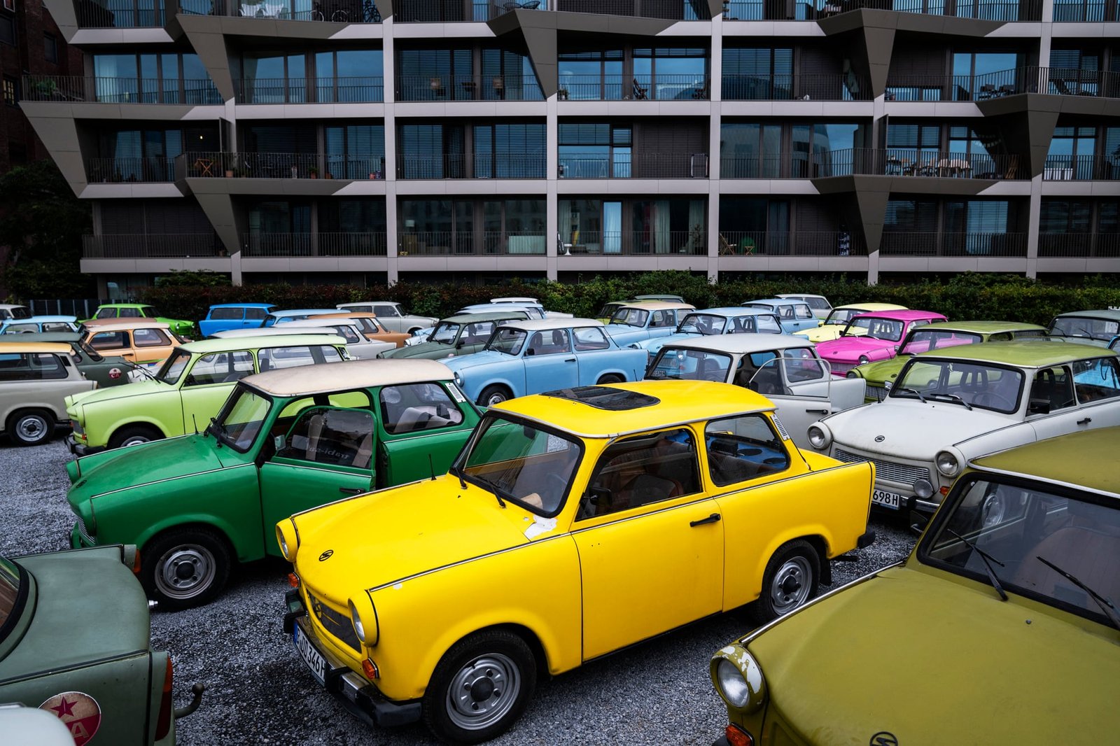 Berlín.– Dos épocas se destacan en esta imagen en la que el coche amarillo sobresale por sobre el resto, aunque todos pertenecen a una misma marca. Son una flota de autos Trabant ubicados en el estacionamiento de Trabiworld, una empresa que ofrece Trabi Safaris para recorrer la ciudad de Berlín. El moderno edificio contrasta con la antigüedad de estos vehículos que se fabricaron en Berlín Oriental desde 1957 hasta 1991. Eran el símbolo del “auto del pueblo”, ya que estaba al alcance de los habitantes de esa ciudad dividida por un muro que representó dos mundos separados por un brutal régimen comunista hasta el 9 de noviembre de 1989. Miles de personas se treparon y lo demolieron hasta reducirlo a escombros, eufóricas por la libertad alcanzada tras el final de la Guerra Fría. Este 3 de octubre Alemania celebró los 35 años del Día de la Unidad, una reunificación lograda después de décadas de un cruel sufrimiento.