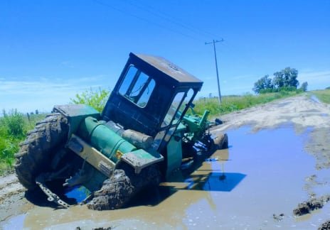 Las complicaciones van desde caminos anegados hasta rotura de implementos y riesgo de vuelcos. “Un camionero me dijo que si se caía en la huella, volcaba el acoplado y que al final tuvo que salir de tiro con un tractor”, contó Legnani al describir la precariedad de la red vial.