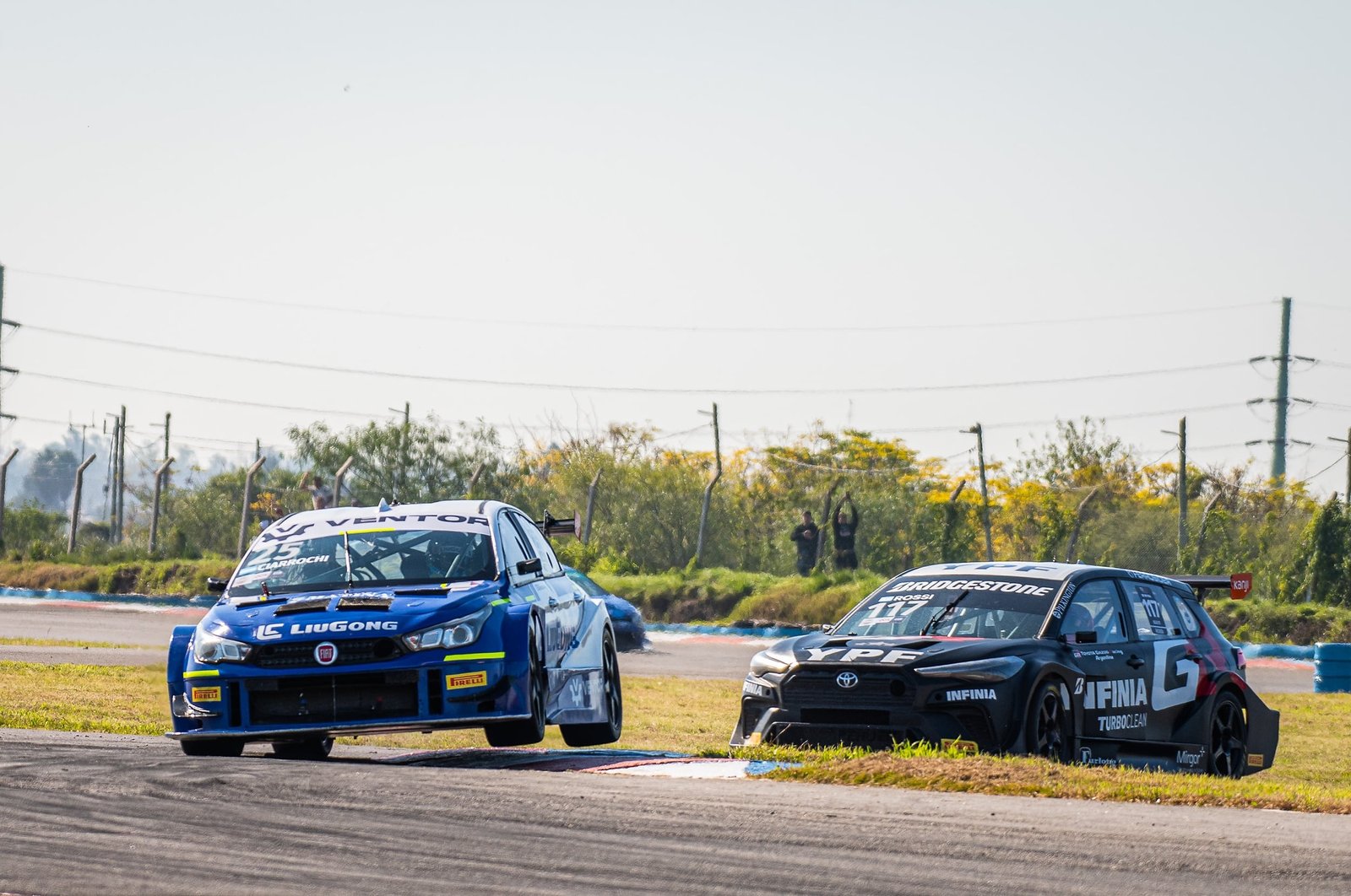 Los incidentes, en un circuito veloz, resultaron otro adversario para Ciarrocchi: el campeón defensor Leonel Pernía (Honda ZR-V) pisó el pasto y recibió un roce de Stang, una pequeña muestra de cómo es de complejo el inicio de temporada para el tandilense. Morillo se despistó y Facundo Aldrighetti (Chevrolet Trucker) se desacomodó al transitar el Curvón y golpeó un cartel de publicidad, rompiendo el frente de su auto y hundiendo el parabrisas. El accidente de Traut, contra el paredón, motivó el ingreso del Auto de Seguridad y abrió la ventana para el ataque final de Rossi a Ciarrocchi. “Muchas maniobras de aproximación, pero no encuentra el espacio”, relataba Darío Ramonda, el responsable de Toyota Gazoo Racing Argentina en charla con la transmisión de televisión.