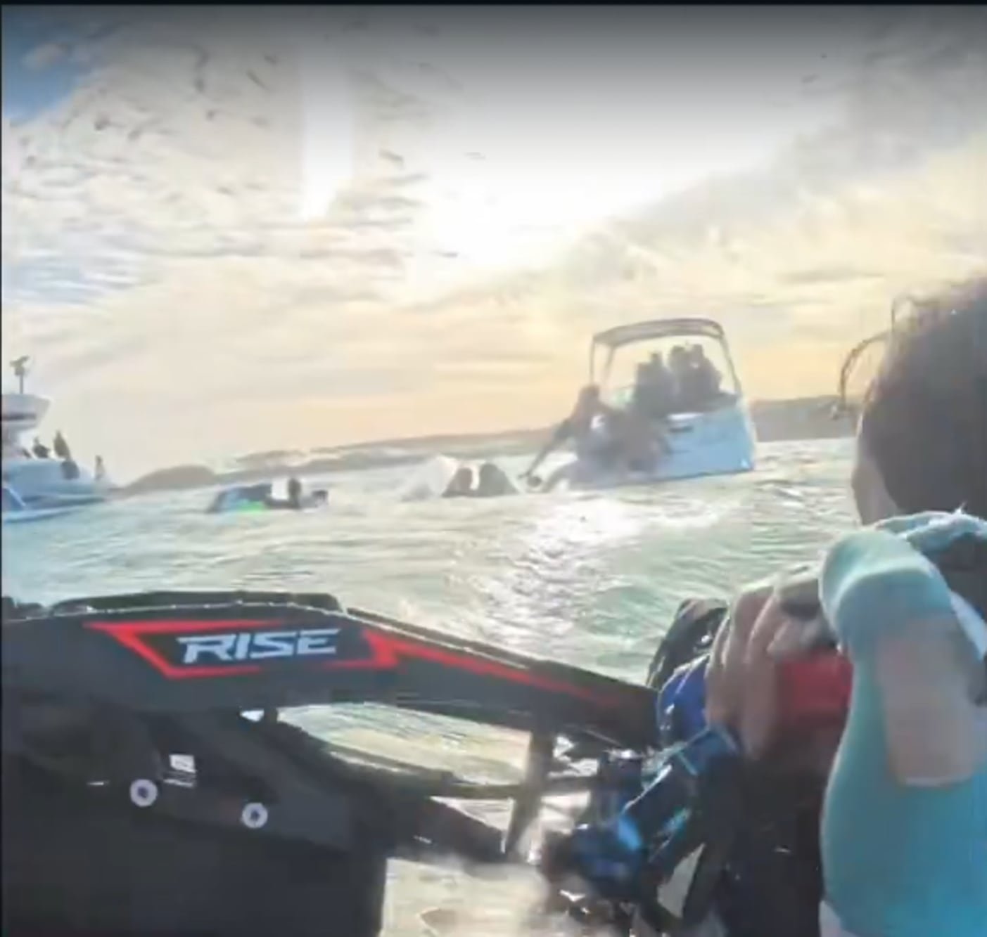 Esta vez, la cámara del casco de Dante que siempre lleva prendida registró algo distinto a los saltos en jet ski que suelen compartir. El video muestra cuando los jóvenes se acercan a la familia, mientras un yate cercano también buscaba colaborar y sacarlos del agua. Se puede observar como los hermanos suben al jet ski a una mujer de traje de baño rojo a la que se le escucha decir “hay una bebé”.