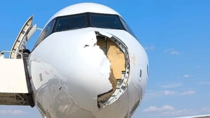 Un avión chocó con un ave, rompió la trompa y tuvo que aterrizar de emergencia en Madrid