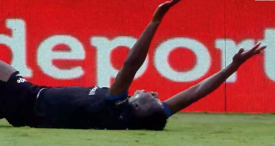 En el registro del partido se observa que el delantero ecuatoriano corría de frente al arco cuando alcanzó a puntear la pelota antes del cruce defensivo. Negro, que retrocedía, interceptó la carrera del atacante con una patada que provocó la caída inmediata del jugador de Independiente del Valle.