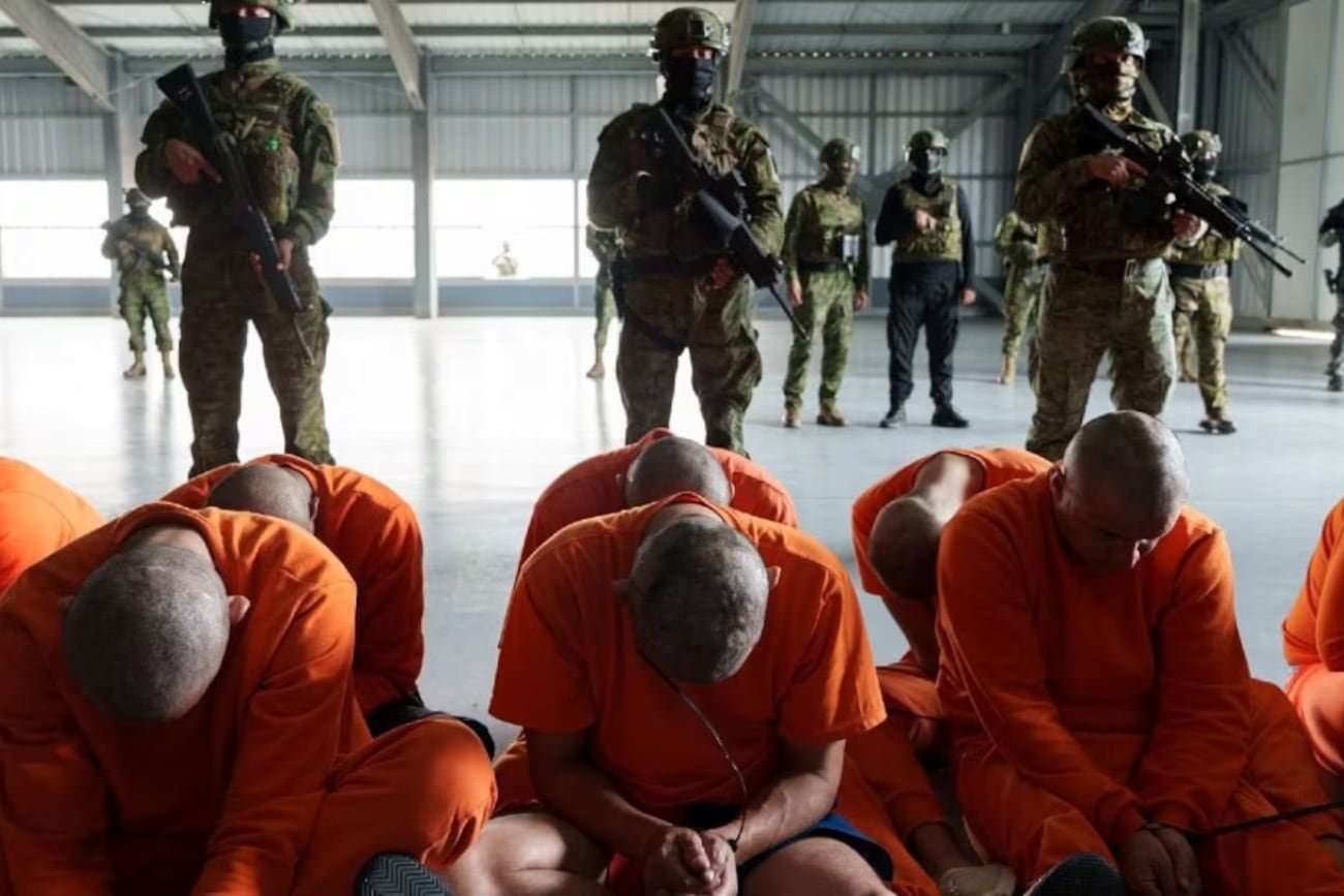 Tras inaugurar la llamada Cárcel del Encuentro (una megacárcel para 800 personas), el gobierno difundió imágenes de reos con uniformes naranjas, las manos atadas y la cabeza rapada, rodeados de militares. A pesar de que Noboa anunciara una guerra total contra el narcotráfico, la violencia no cesa en Ecuador.