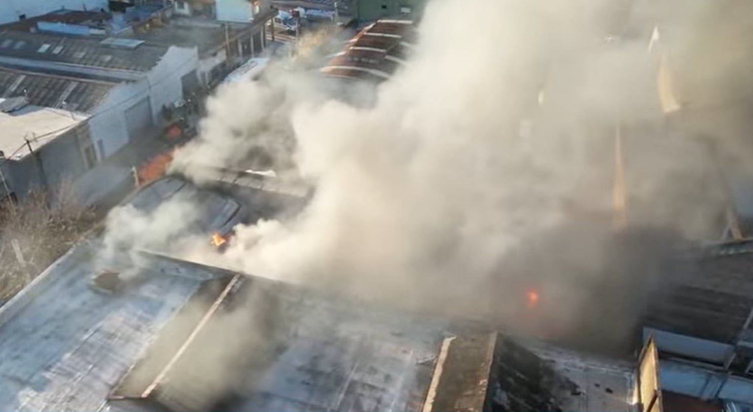 El dron de LN+ capturó imágenes de las llamas y el humo en la industria, ubicada en la calle José Martí, solo a siete cuadras de la pañalera que quedó destruida la semana pasada.