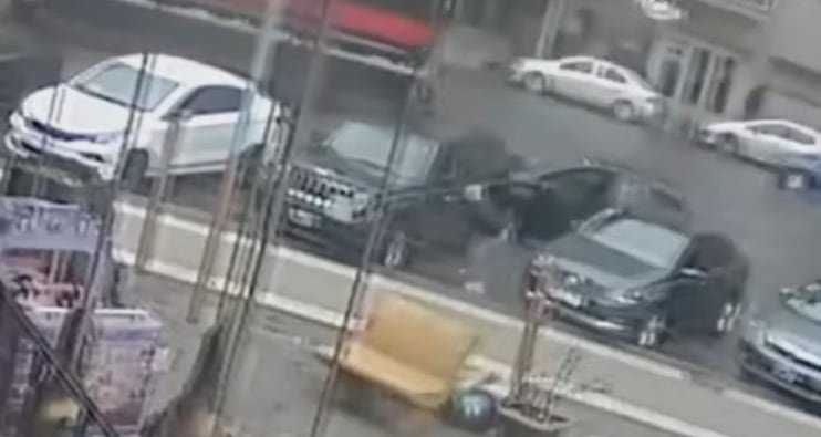 A partir de las imágenes obtenidas de una cámara de seguridad, luego del intercambio, la mujer amagó con retirarse del lugar, pero fue hasta su auto para buscar las llaves. Luego, volvió hasta la camioneta Jeep y le rayó la puerta del conductor.